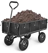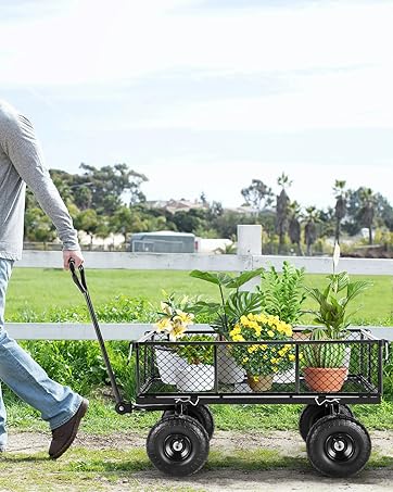 This robust garden cart can handle a maximum weight of 660lb in a static state, and up to 550lb in a dynamic state, meeting your daily gardening needs. With dimensions of 402010 inch, it is ideal for carrying items like wood, flower pots, and other gardening supplies. Its convenient and practical design makes it perfect for both garden and courtyard use.